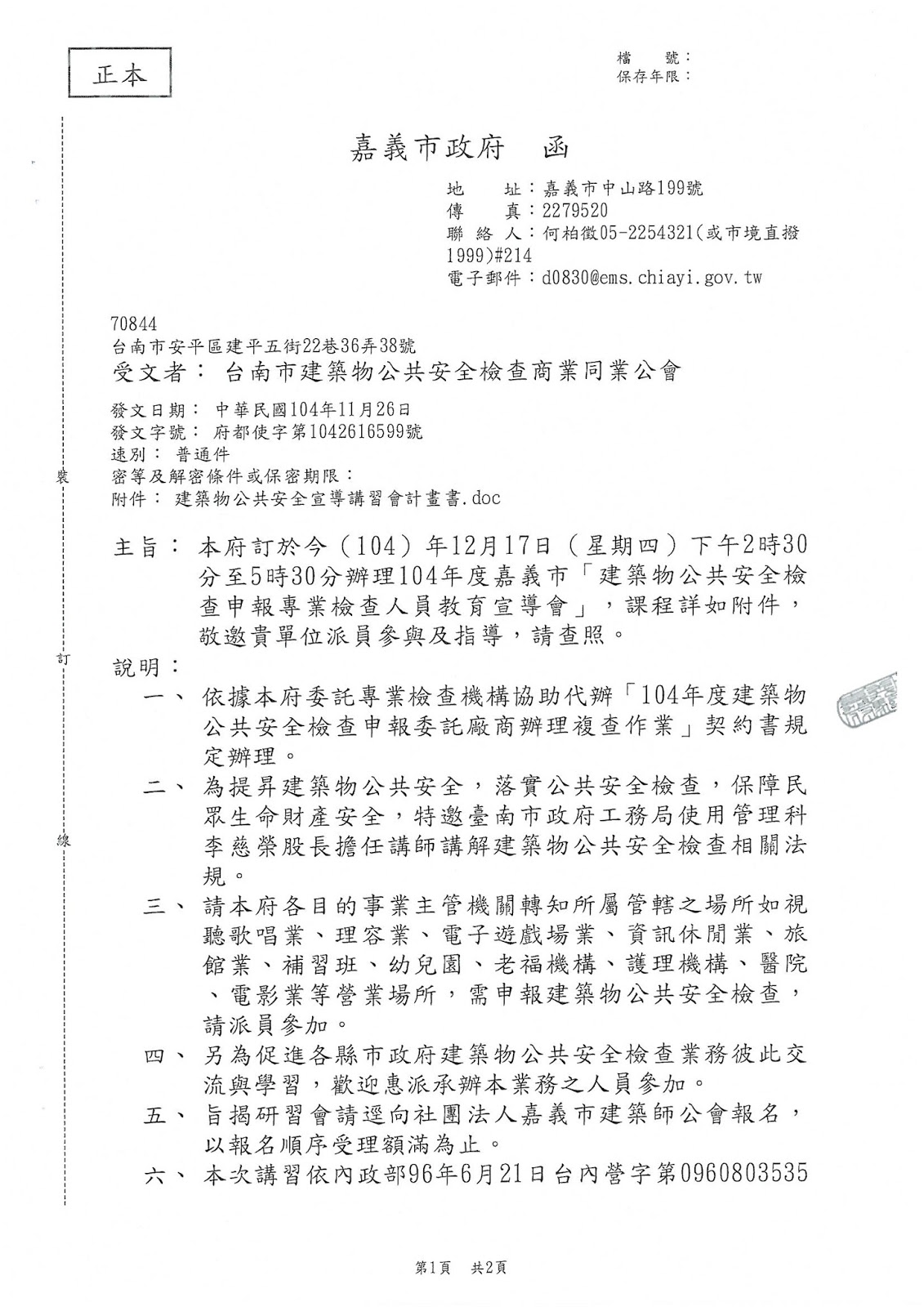 轉知 嘉義市政府公安宣導會